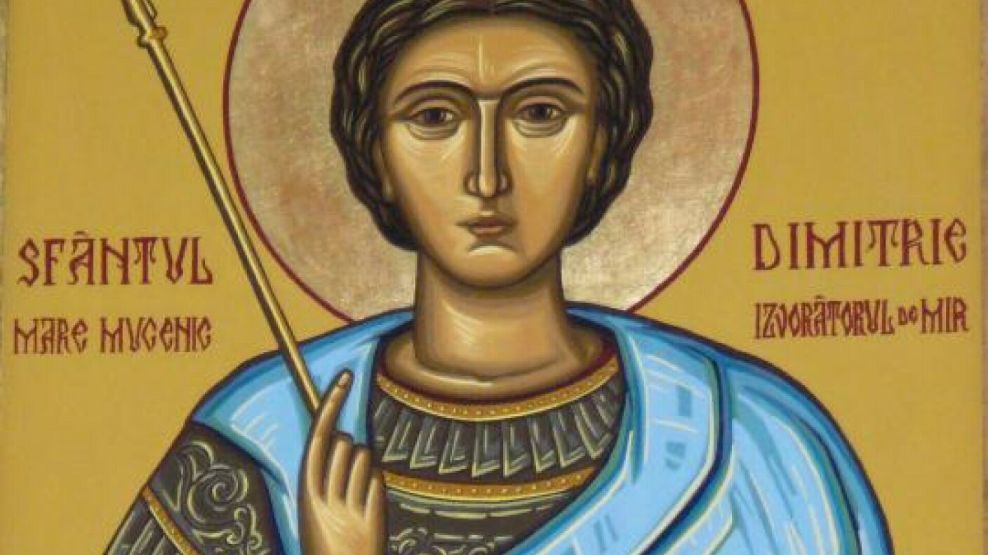 Sfântul Mare Mucenic Dimitrie, cunoscut și ca Izvorâtorul de Mir, a fost un tânăr creștin din Tesalonic, Grecia, care a trăit în secolul al III-lea. Biserica îl prezintă ca pe un conducător plin de credință și milostenie. Părinții săi, un voievod al cetății și soția lui, l-au botezat în secret, ascunzându-și credința din cauza persecuțiilor păgâne de atunci. Dimitrie a crescut în familie, unde a învățat tainele creștinismului, devenind un tânăr înțelept și virtuos. După moartea tatălui său, a moștenit funcția de dregător al orașului Tesalonic.