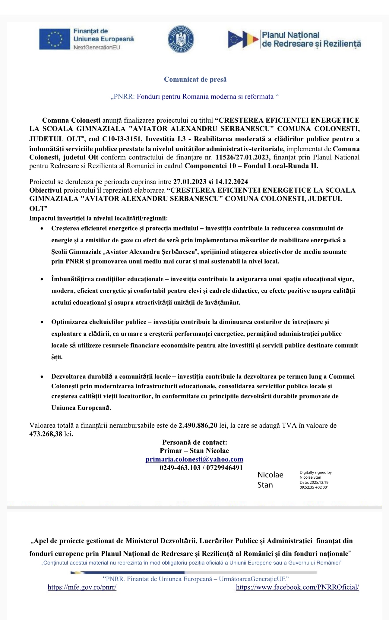 Anunțuri Anunț By: Gazeta Oltului Redactia Date: 19 decembrie 2025 11:56 Screenshot Articolul precedentAnunţ public privind decizia etapei de încadrare – S.C. OMV PETROM MARKETING S.R.L. Gazeta Oltului Redactiahttps://www.gazetaoltului.ro LĂSAȚI UN MESAJ Renunțați la răspuns Comentariu: Vă rugăm să introduceți comentariul dvs.! Nume:* Introduceți aici numele dvs. Email:* Ați introdus o adresă de e-mail incorectă! Vă rugăm să introduceți adresa dvs. de e-mail aici Website: Salvați numele meu, adresa de e-mail și site-ul web în acest browser pentru data viitoare i comentariu. Δ Distribuie FacebookTwitterPinterestWhatsApp Anunțuri Anunţ public privind decizia etapei de încadrare – S.C. OMV PETROM MARKETING S.R.L. Anunț – S.C. VIENNA ENERGY FORTA NATURALA S.R.L Anunț – OMV PETROM MARKETING Anunț – ECOREP SCRAPP SRL Anunț -Marian MIRCEA More like thisRelated Anunţ public privind decizia etapei de încadrare – S.C. OMV PETROM MARKETING S.R.L. Gazeta Oltului Redactia - 19 decembrie 2025 09:34 Anunţ public privind decizia etapei de încadrare S.C. OMV PETROM... Anunț – S.C. VIENNA ENERGY FORTA NATURALA S.R.L Gazeta Oltului Redactia - 19 decembrie 2025 09:33 Anunţ public privind decizia etapei de incadrare S.C. VIENNA ENERGY ... Anunț – OMV PETROM MARKETING Gazeta Oltului Redactia - 19 decembrie 2025 07:15 S.C. OMV PETROM MARKETING S.R.L. titular al proiectului „CONSTRUIRE... Anunț – ECOREP SCRAPP SRL Gazeta Oltului Redactia - 17 decembrie 2025 13:39 ECOREP SCRAPP SRL, cu sediul în București, sec. 6,...