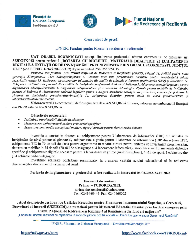 Anunțuri Anunț – Scornicești De către Gazeta Oltului Redactia - 23 februarie 2026 15:25 0 17 FacebookTwitterPinterestWhatsApp