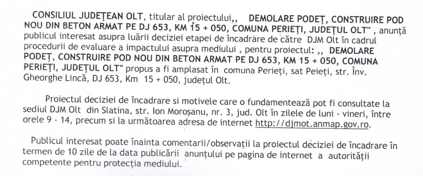 Anunțuri Anunț – CJ Olt By: Gazeta Oltului Redactia Date: 4 decembrie 2025 12:10 Articolul precedentTineri din Brazilia, Mexic, SUA, Franța, Canada, Germania, Argentina, Columbia, Taiwan și Australia au vizitat CJ Olt Gazeta Oltului Redactiahttps://www.gazetaoltului.ro LĂSAȚI UN MESAJ Renunțați la răspuns Comentariu: Vă rugăm să introduceți comentariul dvs.! Nume:* Introduceți aici numele dvs. Email:* Ați introdus o adresă de e-mail incorectă! Vă rugăm să introduceți adresa dvs. de e-mail aici Website: Salvați numele meu, adresa de e-mail și site-ul web în acest browser pentru data viitoare i comentariu. Δ Share post: FacebookTwitterPinterestWhatsApp SubscribeI want inI've read and accept the Privacy Policy. Popular Tineri din Brazilia, Mexic, SUA, Franța, Canada, Germania, Argentina, Columbia, Taiwan și Australia au vizitat CJ Olt Anunt Opoziția depune moțiune de cenzură împotriva lui Ilie Bolojan Scornicești: întâlnire importantă cu beneficiarii programului de panouri fotovoltaice GRATUITE pentru persoanele vulnerabile Majorarea valorii maxime a tichetelor de masă la 45 lei, începând cu cele aferente lunii noiembrie, este oficială More like thisRelated Anunt Gazeta Oltului Redactia - 3 decembrie 2025 15:52 Anunț pierdere Gazeta Oltului Redactia - 3 decembrie 2025 12:16 MIANIS POPESCU PAN SERV SRL, cu sediul în Balș,... Anunț – OMV PETROM S.A. Gazeta Oltului Redactia - 3 decembrie 2025 10:20 OMV PETROM S.A. anunţă publicul interesat asupra depunerii solicitării... Anunț – SC SMOOTH SOCIAL VISION SRL Gazeta Oltului Redactia - 2 decembrie 2025 13:45 SC SMOOTH SOCIAL VISION SRL, cu sediul în Slatina,...