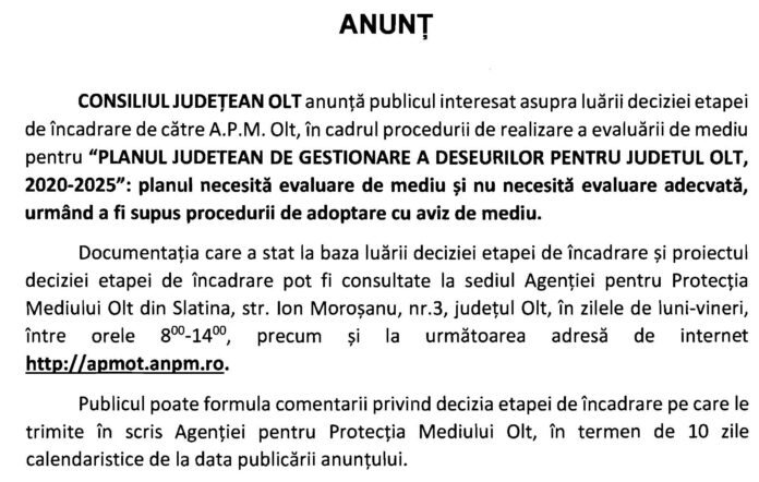 Anunțuri Anunț Consiliul Județean De către Gazeta Oltului Redactia - 30 octombrie 2020 10:15 0 140 FacebookTwitterPinterestWhatsApp