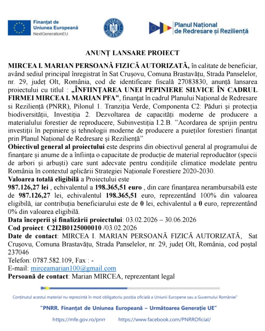 ANUNȚ LANSARE PROIECT