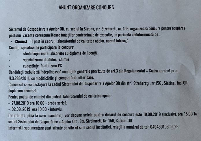 Anunțuri Anunț organizare concurs De către Gazeta Oltului Redactia - 1 august 2019 11:07 0 241 FacebookTwitterPinterestWhatsApp