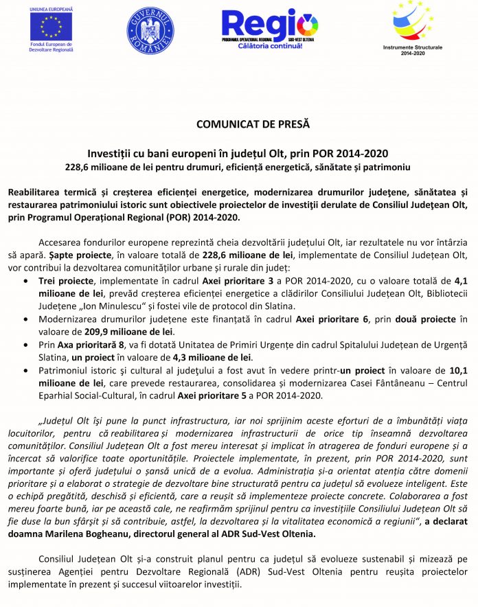 Anunțuri COMUNICAT DE PRESĂ De către Gazeta Oltului Redactia - 4 martie 2021 12:48 0 120 FacebookTwitterPinterestWhatsApp
