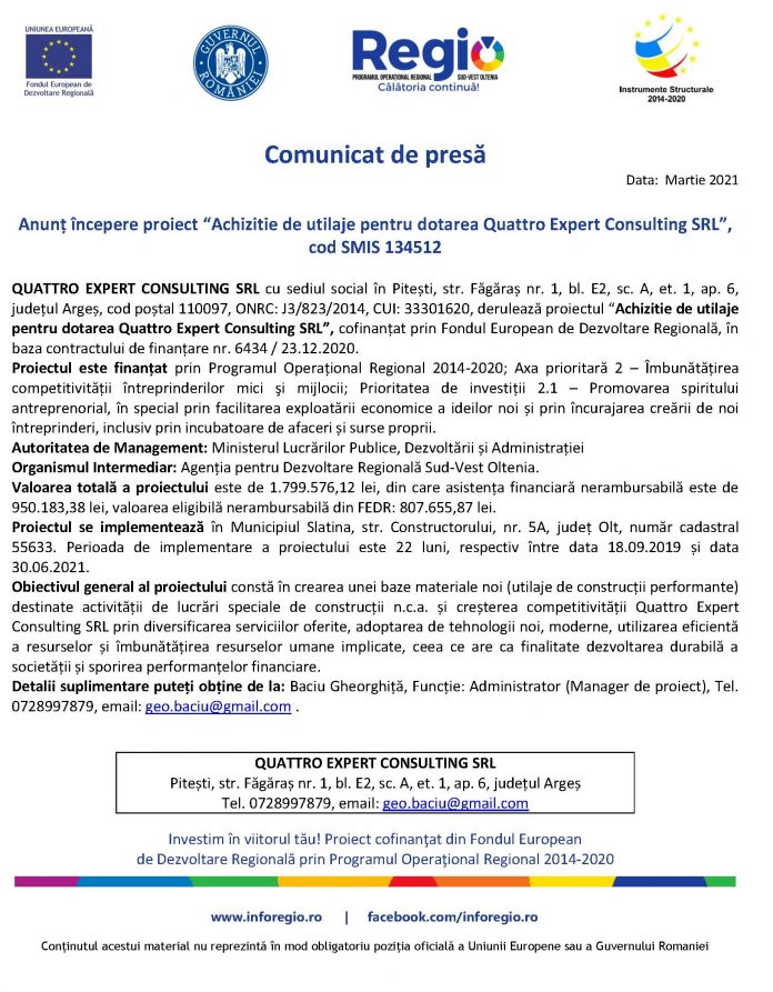 Anunțuri COMUNICAT DE PRESĂ De către Gazeta Oltului Redactia - 4 martie 2021 12:50 0 120 FacebookTwitterPinterestWhatsApp