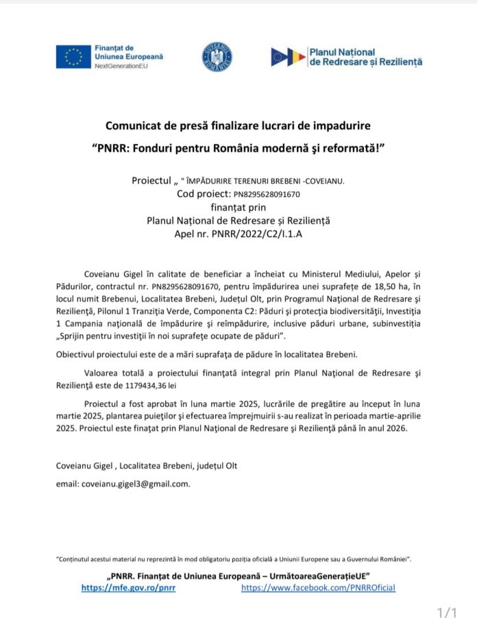 Anunțuri Comunicat de presă finalizare lucrări de împadurire De către Ionela Cristina Mohor - 2 martie 2026 11:44 0 1 FacebookTwitterPinterestWhatsApp