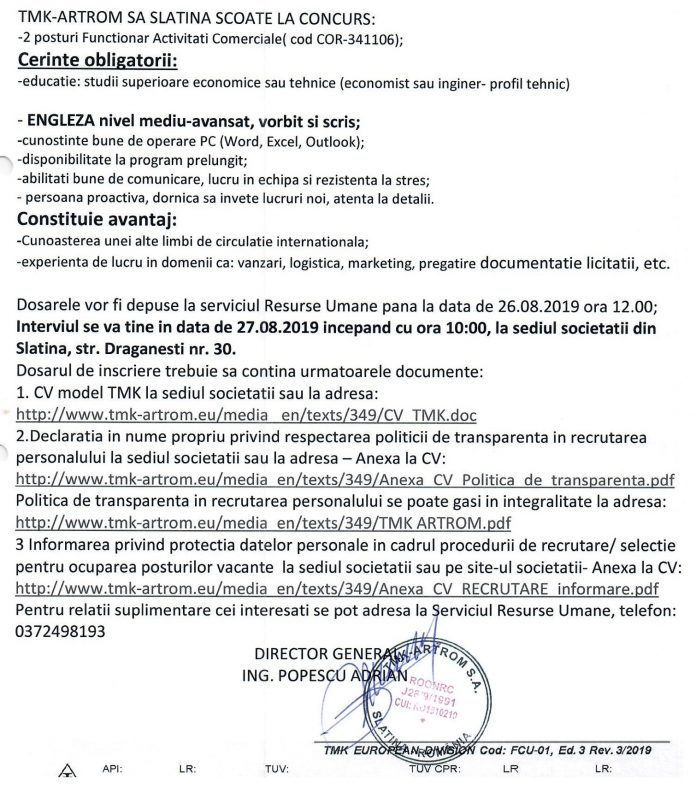 Anunțuri POST TMK De către Gazeta Oltului Redactia - 22 august 2019 10:43 0 217 FacebookTwitterPinterestWhatsApp