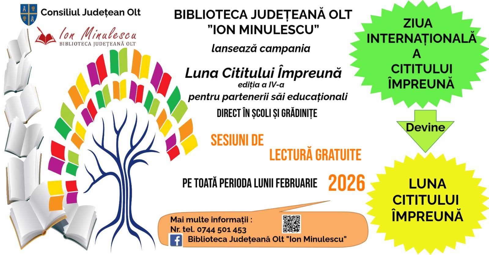 Biblioteca Județeană Olt „Ion Minulescu” organizează, în luna februarie, cea de-a IV-a ediție a evenimentului Luna Cititului Împreună. Acțiunea se adresează partenerilor educaționali ai bibliotecii și se va desfășura direct în grădinițe și școli, prin ateliere de lectură organizate de bibliotecari în sălile de clasă.