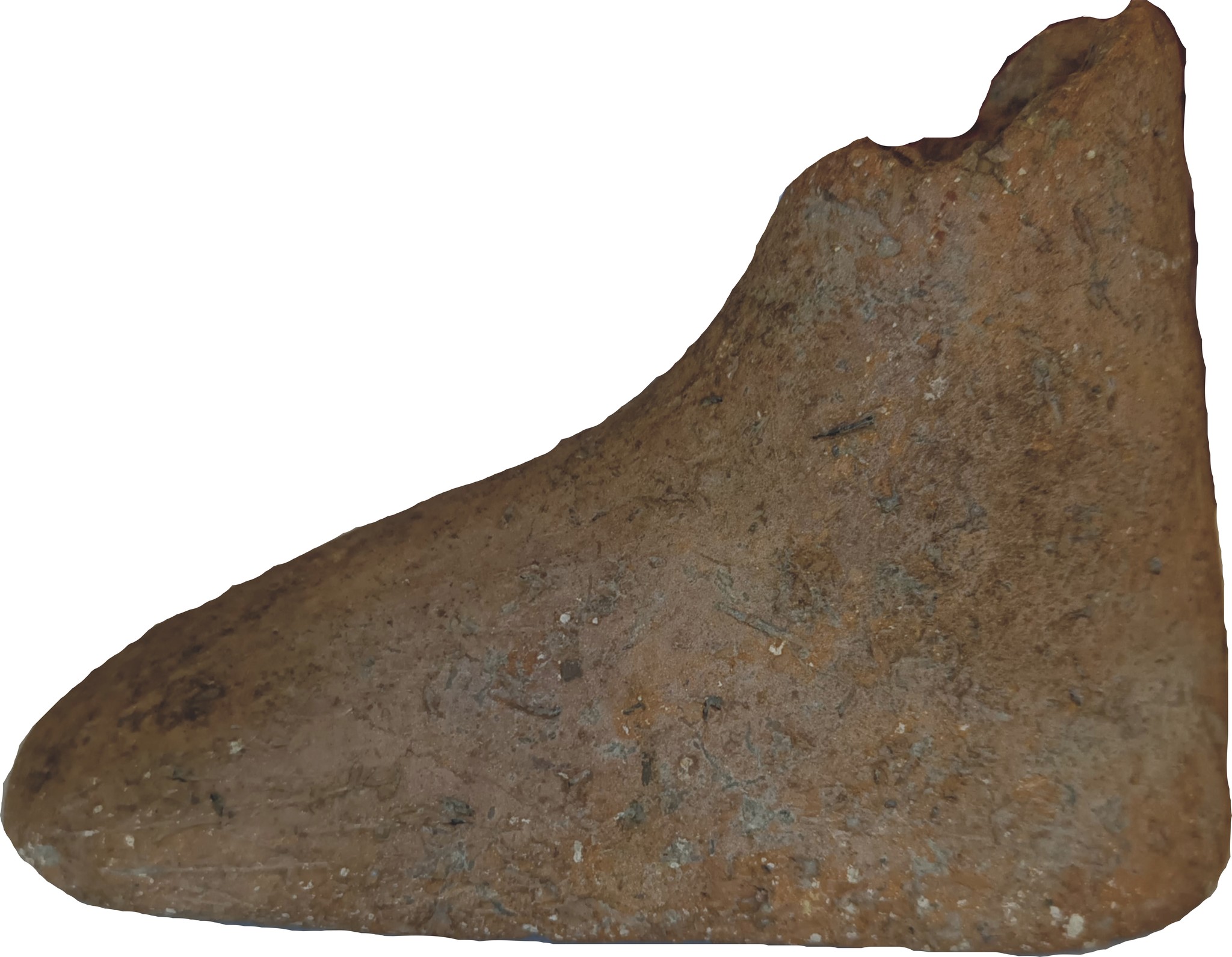 Din punct de vedere tipologic, obiectul este identificat ca suport de vas, mai exact un suport realizat în formă de picior antropomorf sau de calapod. Piesa pare să fi fost lucrată manual dintr-o singură bucată de lut și are un aspect masiv. În compoziția pastei pot fi observate pietricele, cuarț mărunțit și urme de materiale organice, elemente care oferă indicii despre tehnica de realizare și despre materialele folosite în epocă. Suprafața a fost bine netezită, iar pe anumite porțiuni se mai păstrează urmele unei angobe în nuanțe de brun și cărămiziu.