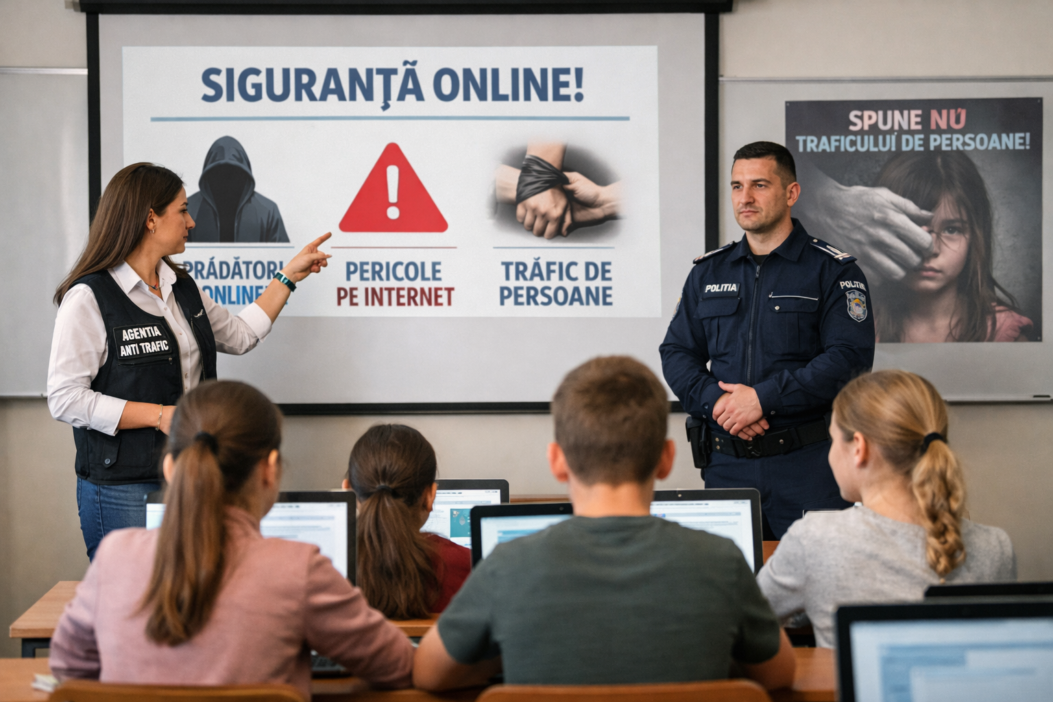 Mai multe unități de învățământ din municipiul Slatina au găzduit, joi, 12 martie, activități de informare dedicate elevilor, în cadrul unei campanii de prevenire care a vizat traficul de persoane, pornografia infantilă și alte infracțiuni comise în mediul online. Demersul a avut ca obiectiv creșterea gradului de conștientizare în rândul minorilor cu privire la pericolele la care se pot expune, atât în viața reală, cât și pe internet.