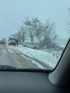 Tot din cauza drumului alunecos, un alt accident a avut loc în zona Cherlești – Moșteni, unde, potrivit imaginilor surprinse la fața locului, un microbuz destinat transportului de elevi a fost implicat într-o coliziune. Autovehiculul prezintă avarii serioase în partea frontală, iar traficul a fost îngreunat temporar. Din primele informații, accidentul s-ar fi produs fără victime.