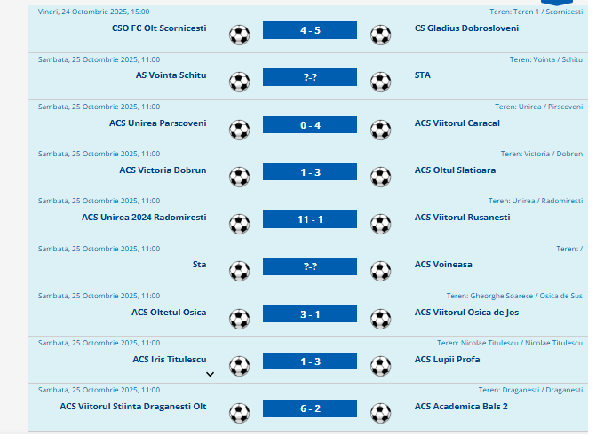 În weekendul trecut, la nivelul județului Olt s-a desfășurat etapa 11 din cadrul Ligii a IV-a a sportului rege.