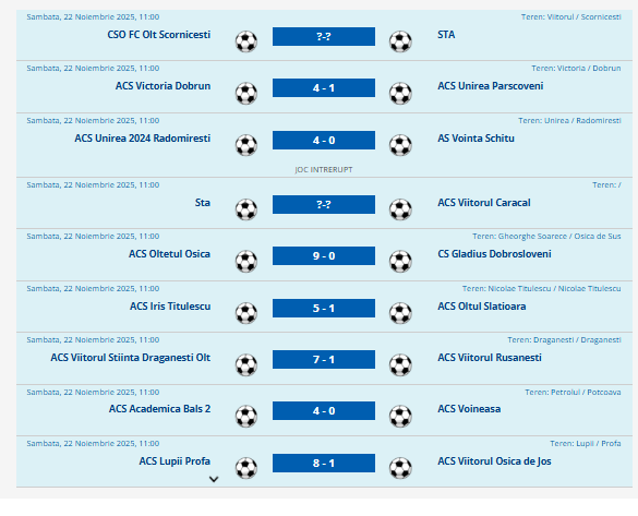 În acest weekend, la nivelul județului Olt, s-au disputat meciurile din cadrul Ligii a IV-a de fotbal, contând pentru etapa cu numărul 15.