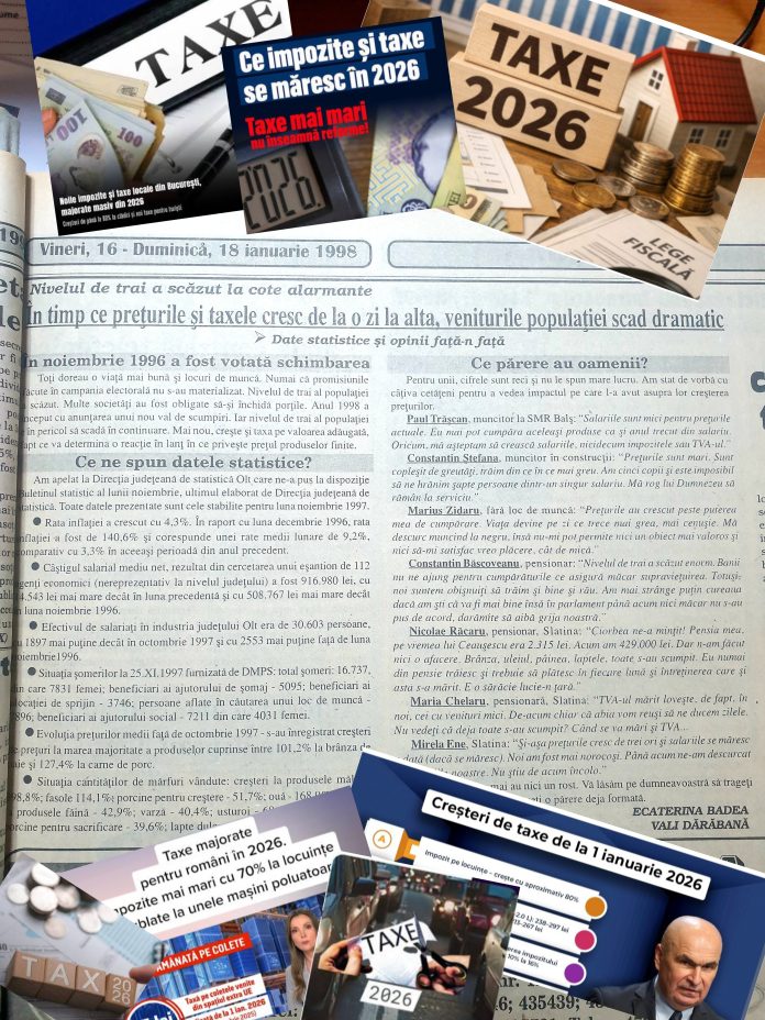 Un ziar îngălbenit de vreme, datat 16-18 ianuarie 1998, ne lovește astăzi cu o actualitate dureroasă. Titlurile de atunci par scrise sub presiunea inflației de acum: „Prețurile și taxele cresc de la o zi la alta, veniturile populației scad dramatic”. Sună cunoscut?