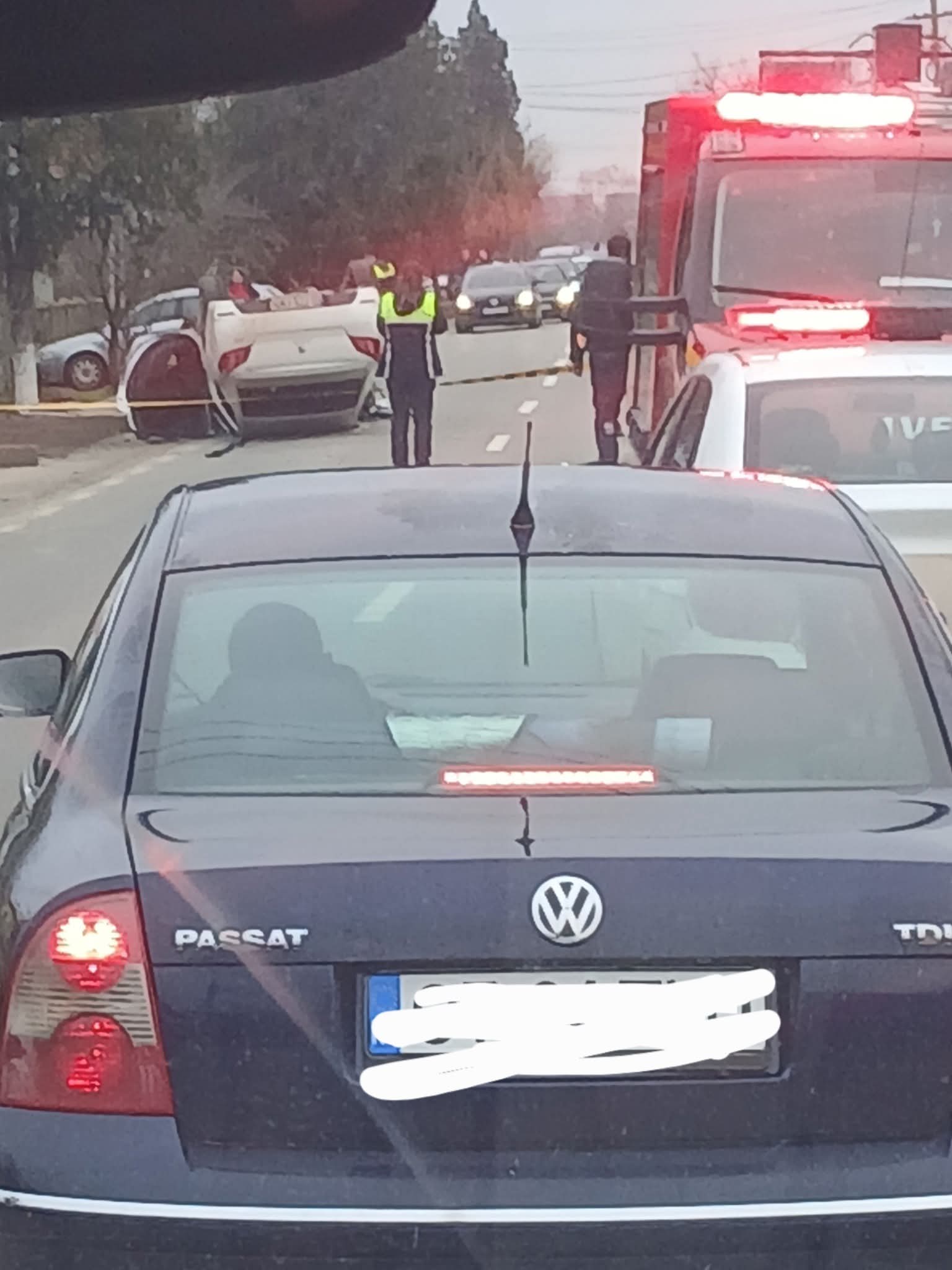 Impact violent la Brebeni: O mașină s-a răsturnat și a fost distrusă complet